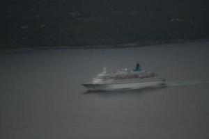 wir sehen auch ein Kreuzfahrtschiff und die Hurtigrute sehr klein vorbeiziehen.