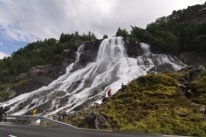 Da wir die Raglamyr ausserhalb der Stadt ja bereits vom Kurzdurchlauf kannten, ging es also zunächst in die Innenstadt. Wobei die Innenstadt von Haugesund größenmässig überschaubar ist und das Einkaufszentrum ganz leicht zu finden ..irgendwo hinter dem Krankenhaus.. . Das Krankenhaus befand sich tatsächlich an der angegebenen Stelle, das Einkaufszentrum aber nicht. Nach 5 Minuten kannten wir JEDE Strasse der Haugesunder Innenstadt und entschlossen uns dann doch, das Auto auf einem kostenpflichtigen Parkplatz abzustellen (nach kurzer Beratung wurde die bezahlte Zeit auf 3 Stunden festgelegt) und die Suche zu Fuss fortzusetzen. Nach weiteren 5 Minuten standen wir tatsächlich vor dem Eingang – es hätte auch eine Tiefgarage gegeben….