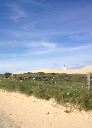 Und mein lieber Mann erfüllte mir einen lang gehegten Wunsch – als i-Tüpfelchen und krönenden Abschluss des gestrigen lighthouse-hopping fuhren wir nach Lønstrup und wanderten an die Küste zum alten Leuchtturm Rubjerg Knude. Zu dieser frühen Zeit waren wir fast die Einzigen. 20120722-191640.jpg