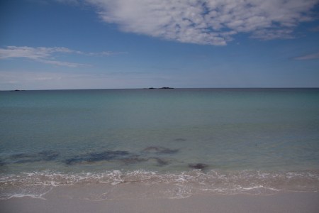 Auch heute wieder Super-Wetter. Also kurzentschlossen: pack die Badehose ein .. und auf nach Karmøy, wo es aussieht wie in der Karibik: weisser Strand, wunderbar klares grünschimmerndes Wasser, die Wellen rauschen …
