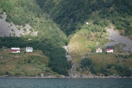 Nach einer guten Stunde sind wir wieder in Hellesylt angelangt. Merkwürdigerweise taucht kurz vor der Ankunft, an genau der selben Stelle wie bei der Ausfahrt, ein grösseres Tier an der Wasseroberfläche auf – vielleicht ein Delfin oder Schweinswal. Hektisches Geklicke auf dem gesamten Schiff, man sieht nichts genaues. Wir amüsieren uns bei der Vorstellung, das es ein ferngesteuertes Was-auch-immer ist und der Sender irgendwo am Ufer steht und sich ins Fäustchen lacht.