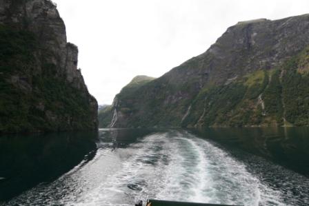Die Fahrt führt zunächst durch den Storfjord, dann biegen wir in den Geirangerfjord ein.