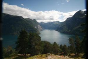 Zum Schluss noch zwei Fotos: das eine zeigt den Sunnylvsfjorden und den Eingang zum Geiranger, das andere einen Schnappschuss von unterwegs.
