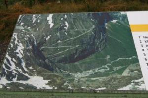 Ulrike und ich treffen letzte Vorbereitungen an der Fotoausrüstung, die Sitzverteilung wird noch mal geändert (aus ebenfalls fotografischen Gründen) und dann geht es los Richtung Serpentinen. Da man sie auf den Bildern wegen des Nebels nicht sieht, hier mal ein abfotografierte Schild.